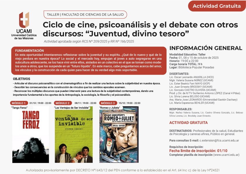 La propuesta invita a reflexionar respecto de los cambios epocales y las consecuencias para la subjetividad, y a problematizar sobre la construcción de los vínculos actuales tomando los aportes de diferentes discursos.