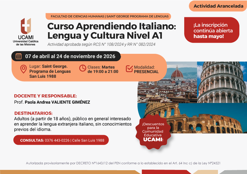Inicio del Curso “Aprendiendo Italiano: Lengua y Cultura Nivel A1”