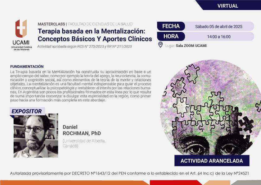 Esta Masterclass, abordará aspectos teóricos prácticos de la mentalización, de manera introductoria, con vistas a comenzar una línea de trabajo y formación en la región en este interesante y novedoso enfoque.
